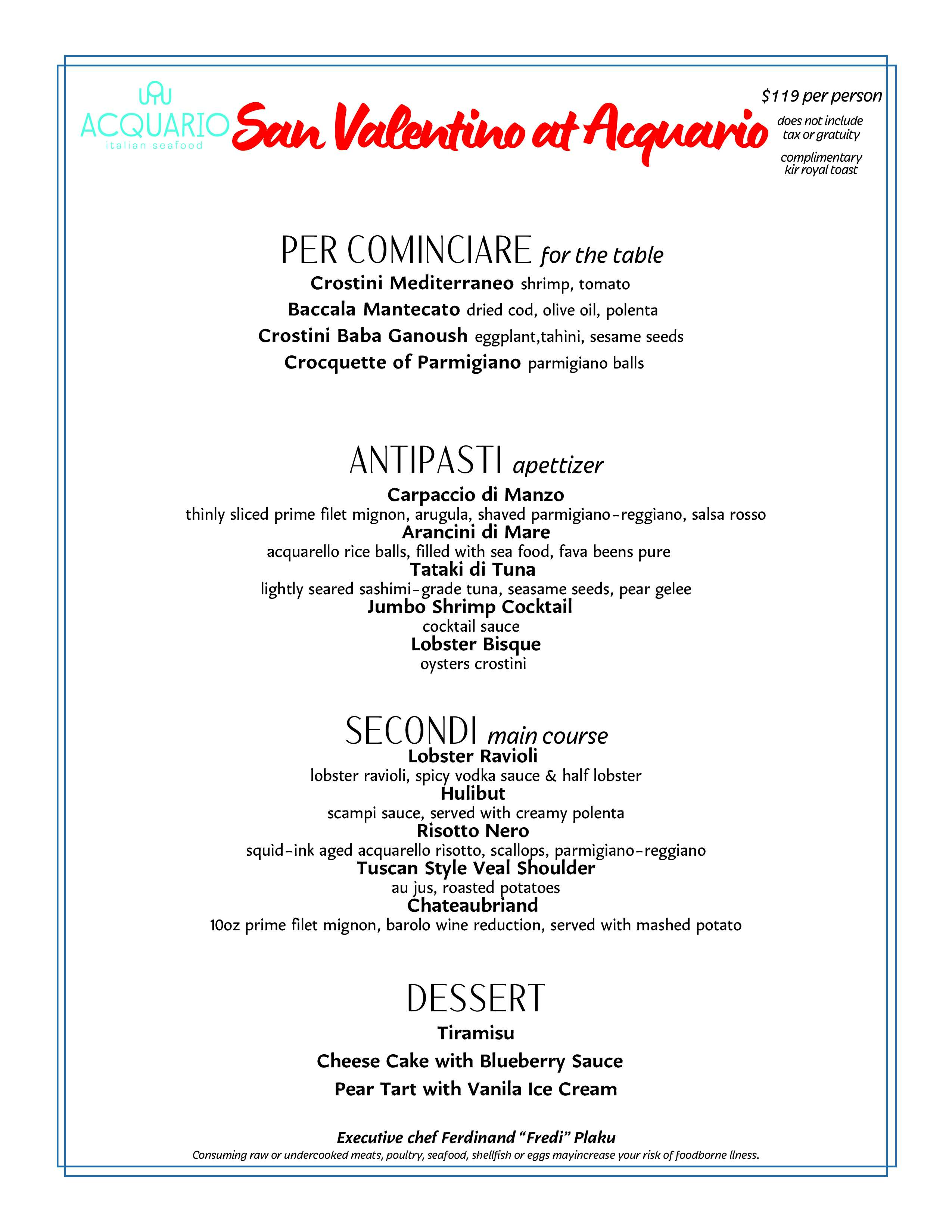 Nestled at the intersection of two remarkable worlds, Acquario is more than a restaurant - it is a sensory celebration of flavors and cultures. Drawing inspiration from the sun-soaked shores of coastal Italy and the robust charm of Texas, Acquario curates an innovative menu that marries the authenticity of Italian cuisine with the vibrancy of Texan hospitality. Acquario's culinary "filosofia" is built on the principle of simplicity, where traditional Italian dishes are crafted using the finest ingredients. The menu showcases a symphony of flavors, with incredibly fresh seafood harmonizing alongside premier steaks sourced from Texas Ranchers. Each plate is a masterpiece, a result of meticulous attention to detail and a genuine passion for the craft.